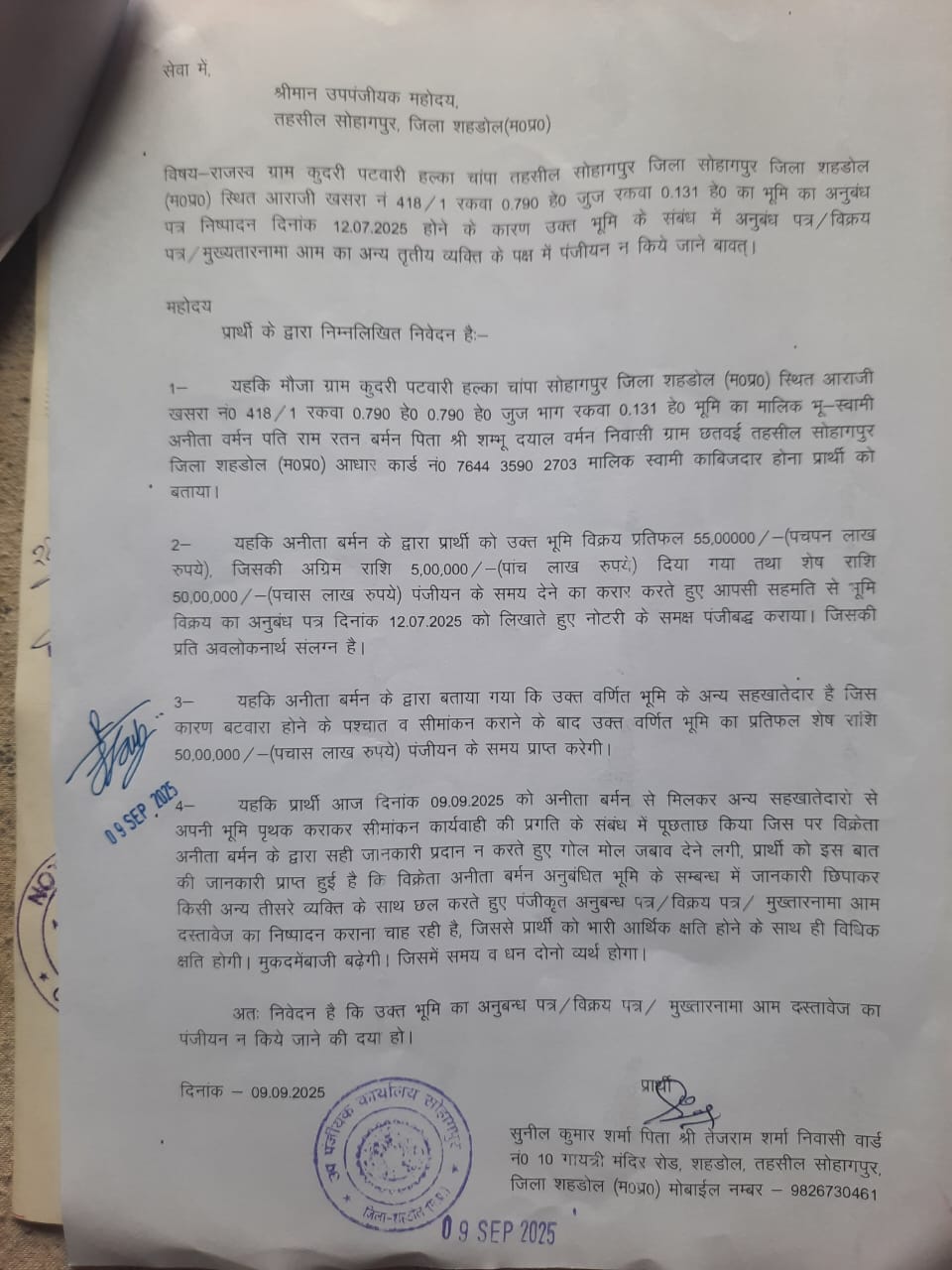 शहडोल बम: खरीदार की आपत्ति के बावजूद हुआ दूसरा एग्रीमेंट — उप-पंजीयक से 48 घंटे में जवाब माँगा गया!